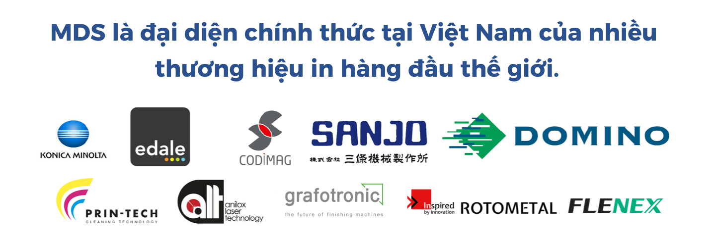 MDS là đại diện chính thức tại Việt Nam của nhiều thương hiệu in hàng đầu thế giới, bao gồm: