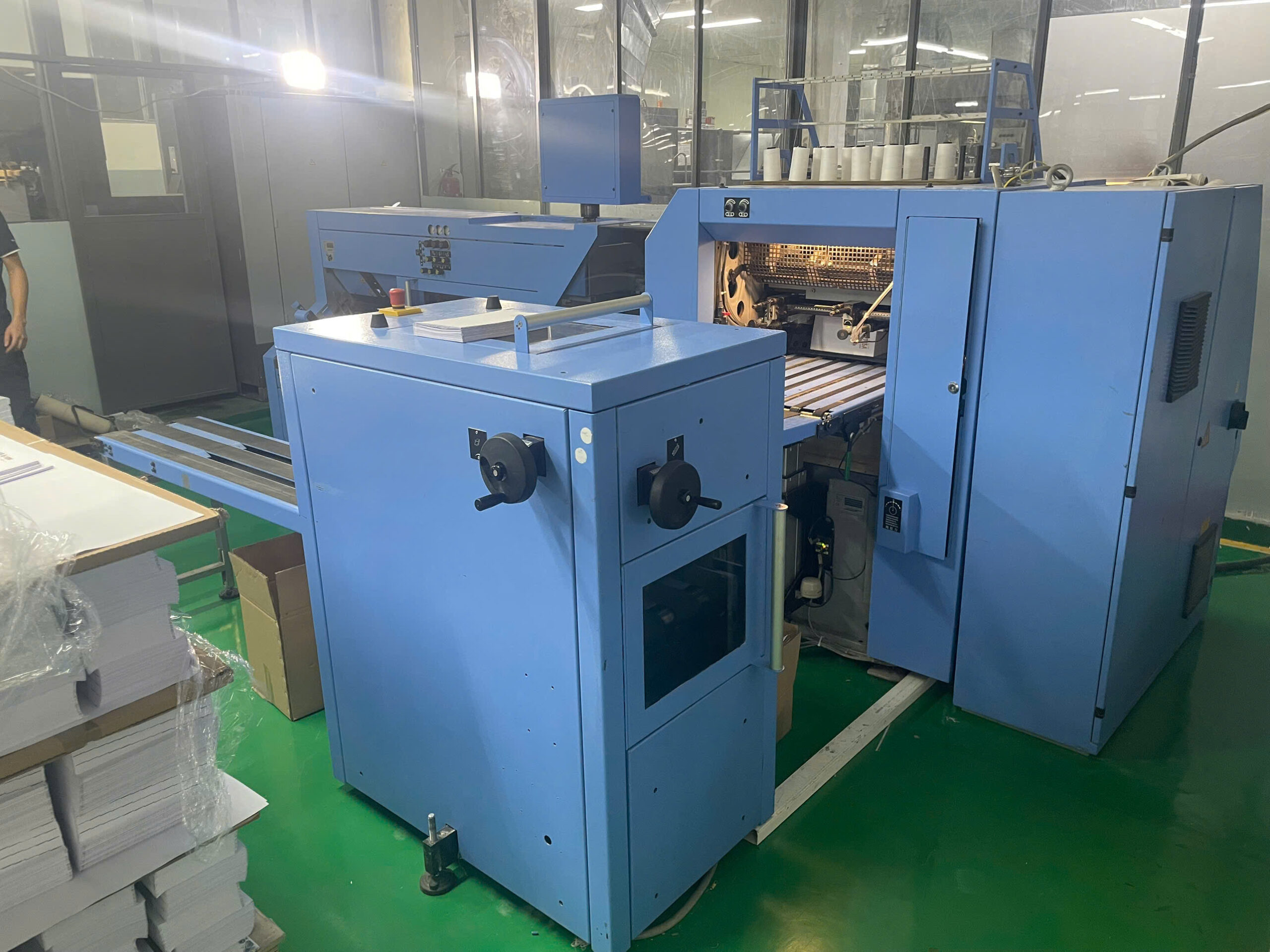 Máy có thể kết nối linh hoạt với các công đoạn tiếp theo như vào keo gáy, đóng bìa, xén sách… nâng cao hiệu quả tổng thể của dây chuyền sản xuất.
